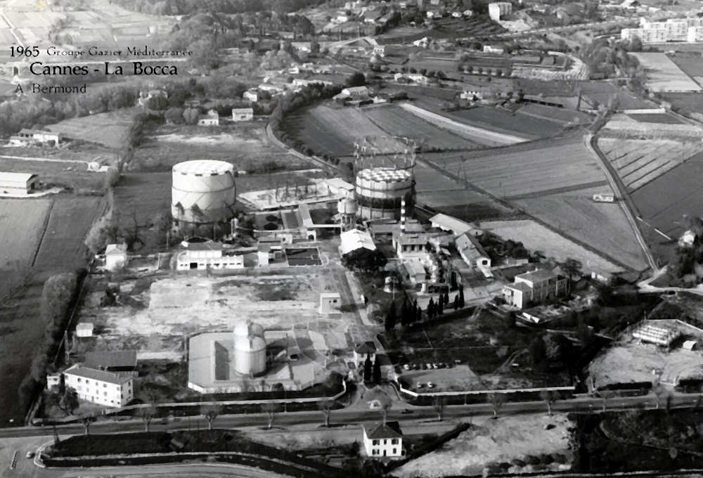 La nouvelle usine à gaz de La Bocca entre en service dans les années 1920. Elle est implantée à proximité de la route nationale et de la voie ferrée, afin de faciliter l’arrivée du charbon et l’expédition des produits dérivés. Sur plusieurs milliers de mètres carrés se répartissent les gazomètres, les fours de distillation, les aires de stockage du charbon et du coke, les ateliers techniques et une haute cheminée qui marque le paysage.
